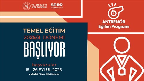 Temel Eğitim başvuruları 15-26 Eylül 2025 tarihleri arasında e-Devlet Kapısı-GSB-Spor Bilgi Sistemi üzerinden gerçekleştirilecektir. Başvurularını yapan adayların belirtmiş oldukları e-posta adresine referans numarası iletilecektir.